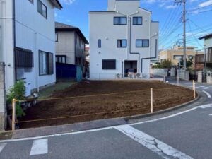 ご近所様に解体工事のお知らせを致しまして、お写真のように更地にさせて頂きました。
